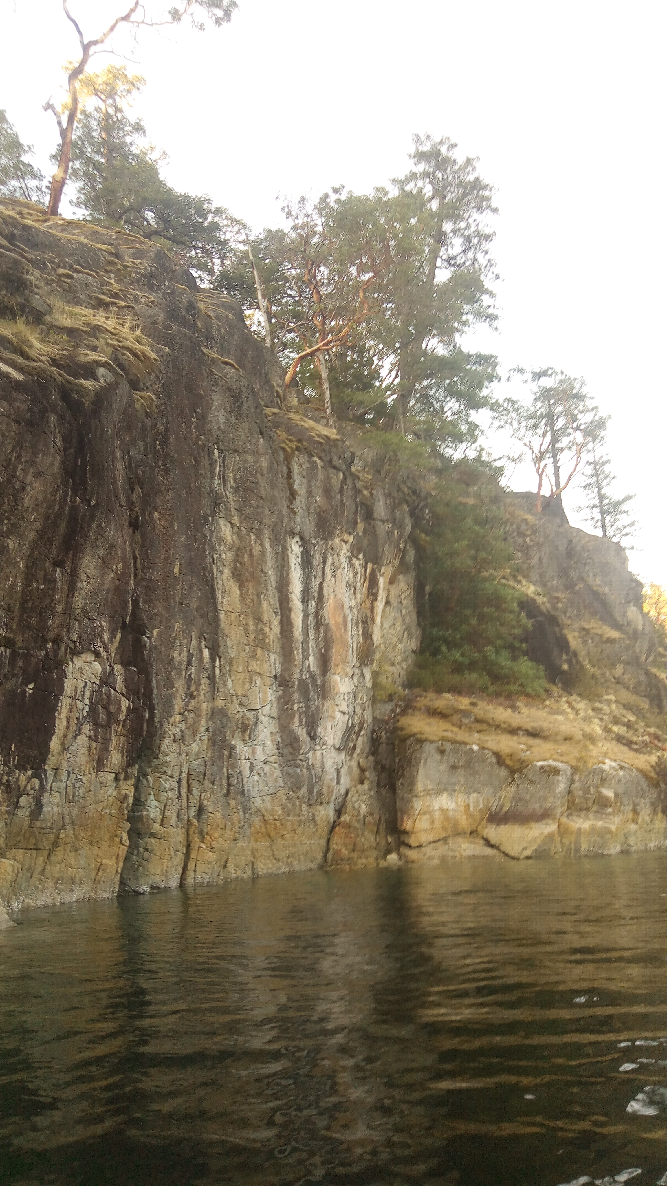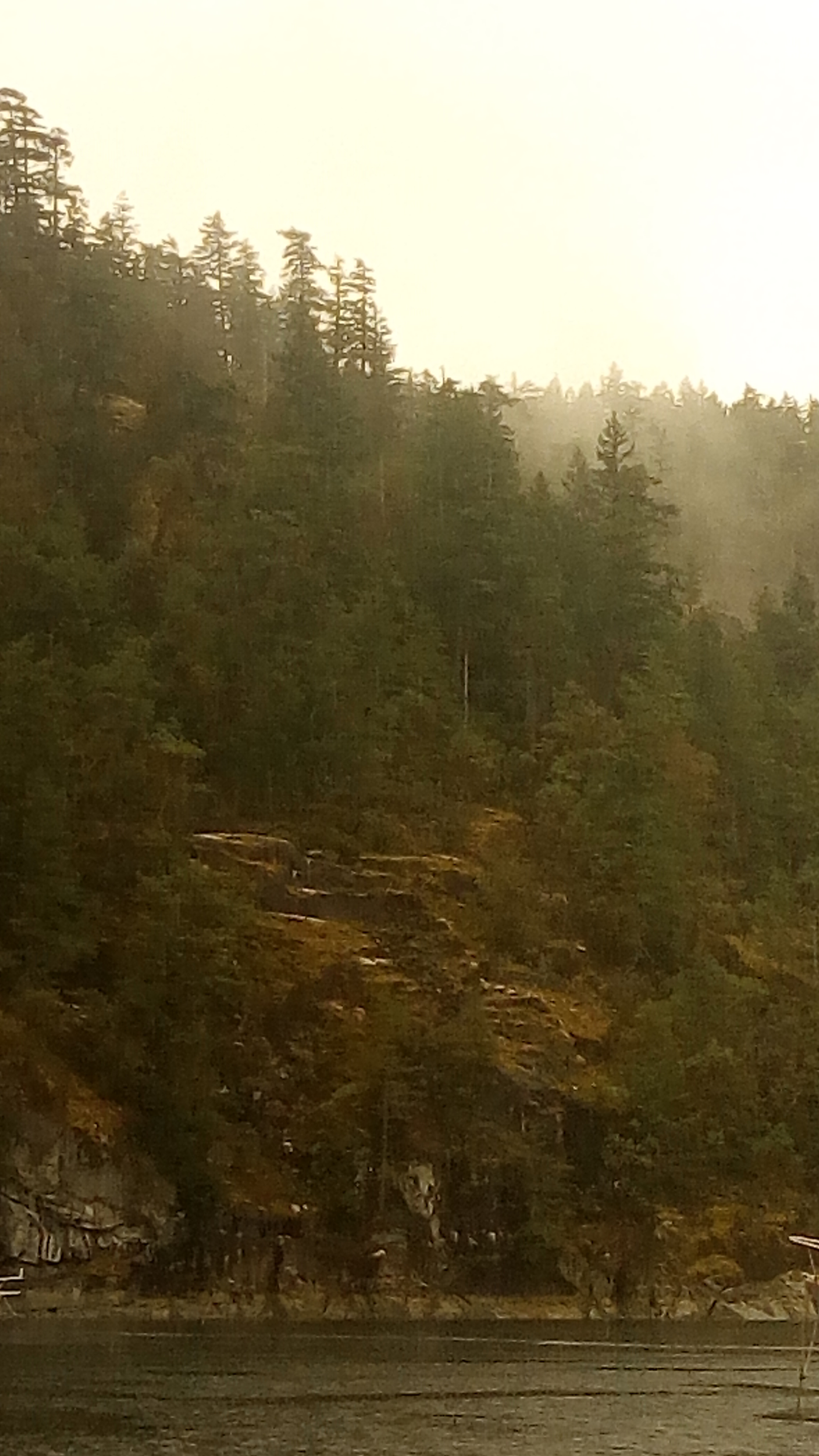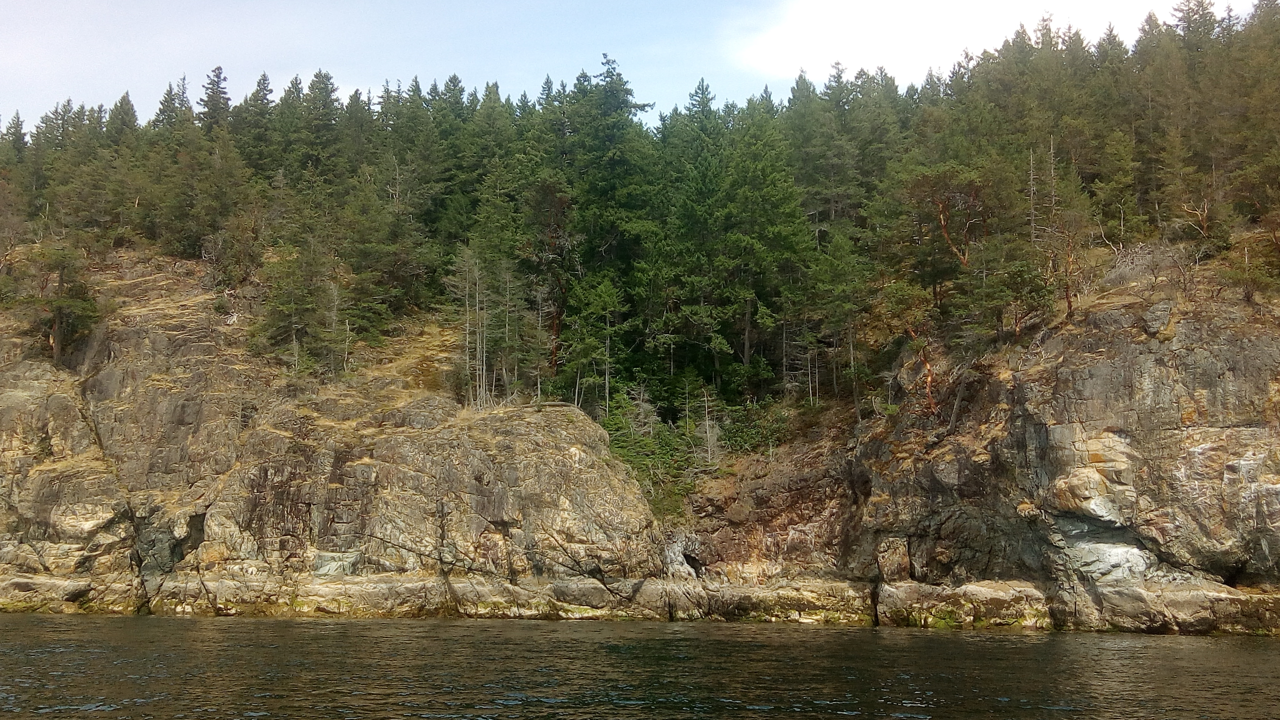 Other places have micro-climates. In BC we have nano-climates, or maybe pico-climates. There are days when I think every tree has its own weather. The bluffs above our anchorage in Tenedos Bay had clouds in one tiny cleft, and not elsewhere.