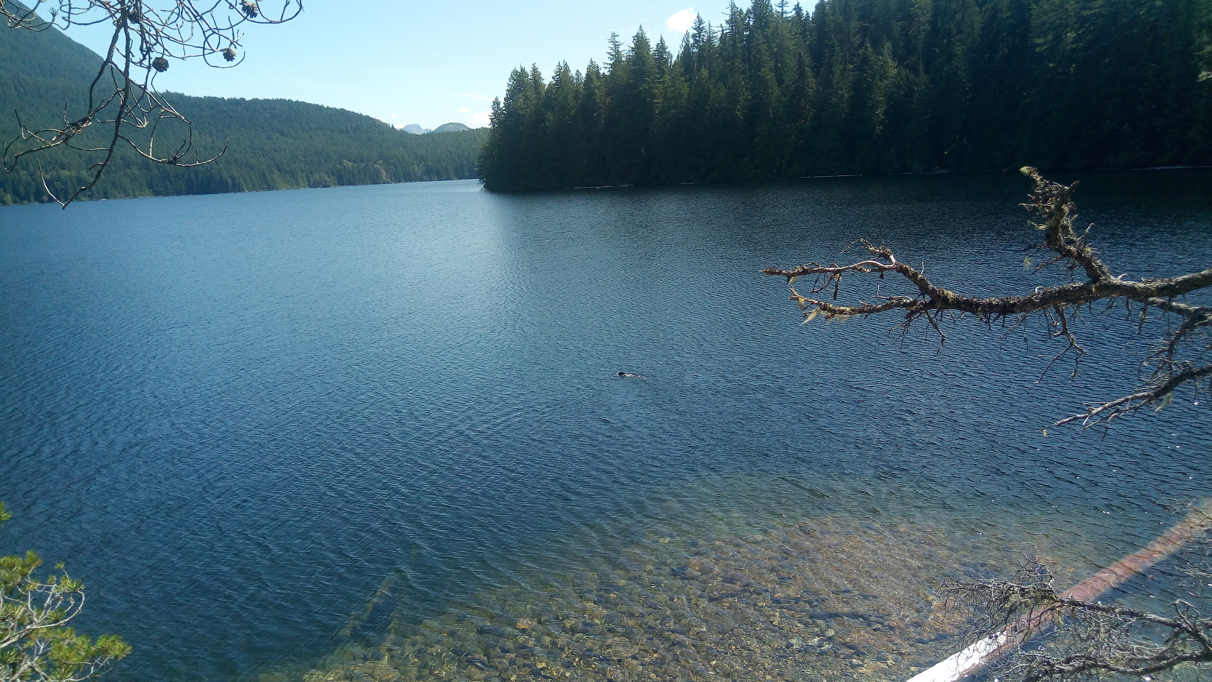 Unwin Lake provides one of several opportunities for freshwater swimming in and around Desolation Sound, which I guess people are keen on. Me, I'm a child of the ocean, but took a dip anyway. Hilary, being an inlander, really enjoyed it.
