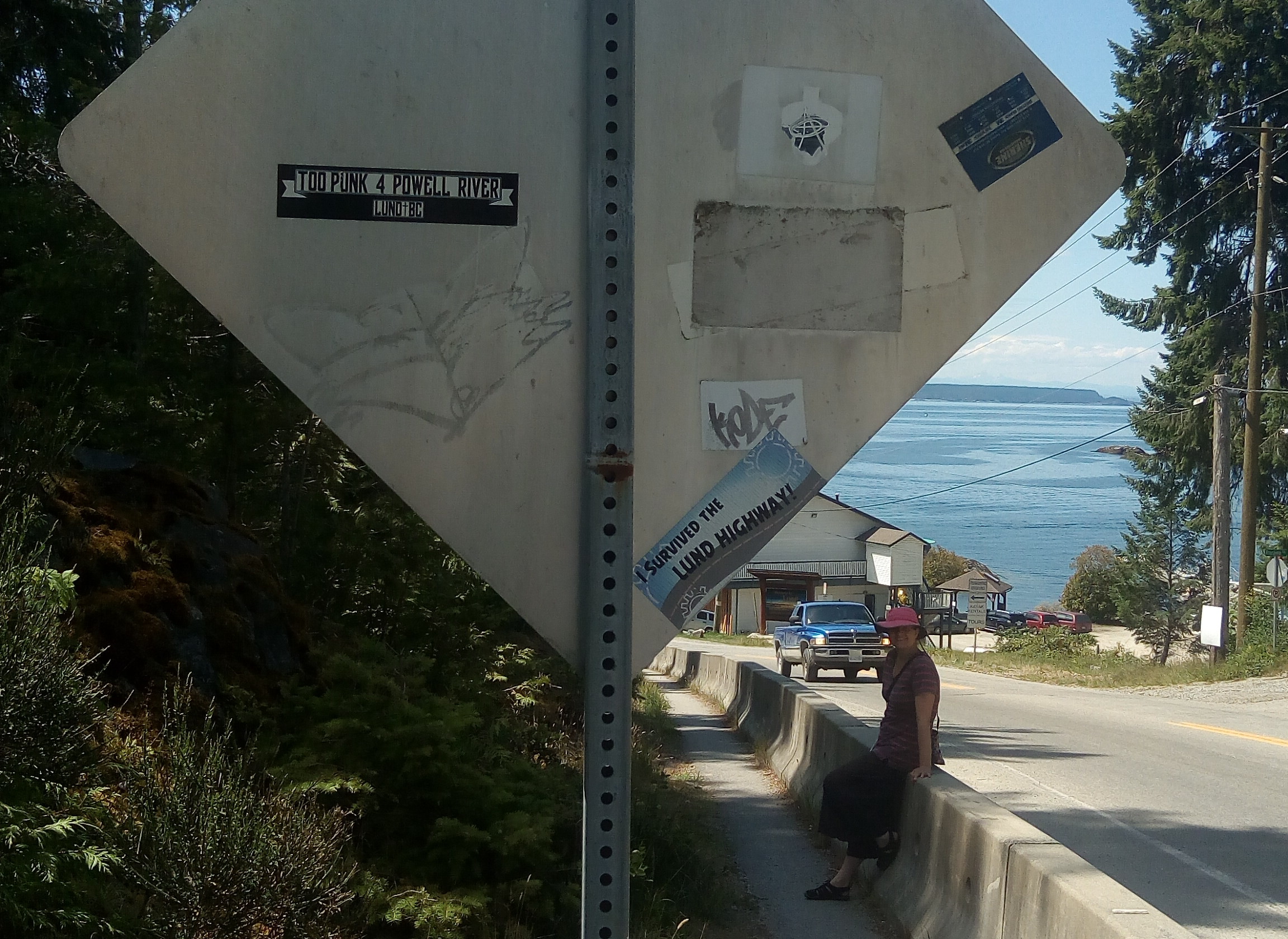 We walked around the "Lund Loop" to stretch our legs and wound up talking to the guy at "Rare Earth Pottery" (I wanted to ask for some lanthanide pieces) who is a serious tai chi practitioner, so he and Hilary had loads to talk about. Fortunately, though they are followers of different styles and masters, they had enough in common to avoid an on-the-spot death-match. We bought a lovely little erratic teacup and got a great view of Savary Island from his driveway.